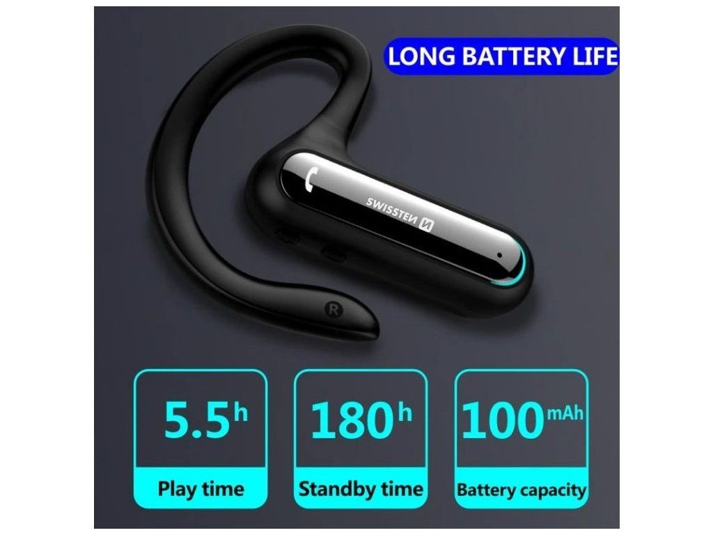 SWISSTEN Dock EarpieceKompaktní bezdrátové handsfree využívající technologii Bluetooth. Výdrž při hovoru na jedno nabití dosahuje až 5,5 hodiny a v případě pohotovostního režimu až 180 hodin. Díky jeho minimalistickému designu jej lze snadno použít i v kancelářích, kdy nechcete mít telefon neustále u ucha. K pohodlnému a bezpečnému nošení výrazně napomáhá i měkký gumový háček za ucho. Nabíjení je realizováno pomocí magnetické dobíjecí kolébky s USB-C portem, kterou lze snadno uchytit do ventilační mřížky automobilu, nebo pomocí 3M samolepky přilepit na jakýkoliv rovný povrch. Případně je možné handsfree dobíjet pomocí magnetického kabelu.