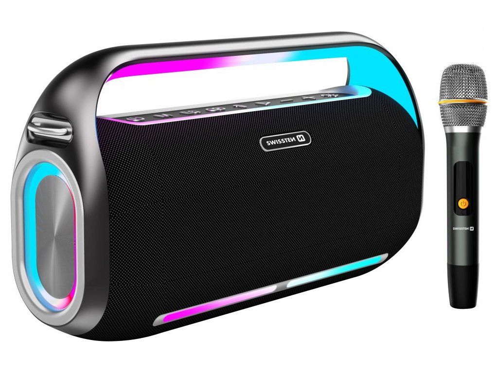 SWISSTEN HARMONY 200 WPřenosný reproduktor s výkonem 200 W a barevným LED podsvícením zajistí dostatečné ozvučení vaší párty. Podporuje navíc funkci True Wireless Stereo (TWS), která umožňuje dvěma bezdrátovým reproduktorům vytvářet stereo zvuk a vynásobit tak výkon i hudební zážitek. Hudbu lze přehrávat jak drátově skrze AUX vstup, tak i bezdrátově pomocí technologie Bluetooth. Pokud si párty chcete opravdu užít, můžete využít také bezdrátový mikrofon (součástí balení). Pro rychlé přehrávání z paměťových médií je přítomen USB port. Vestavěná baterie s kapacitou 18 000 mAh zajistí až 13 hodin provozu. Nabíjení je realizováno skrze konektor USB-C, přičemž lze využít i režim powerbanky pro nabíjení vašich zařízení s USB konektorem.