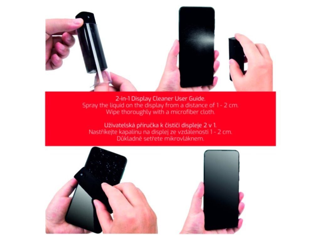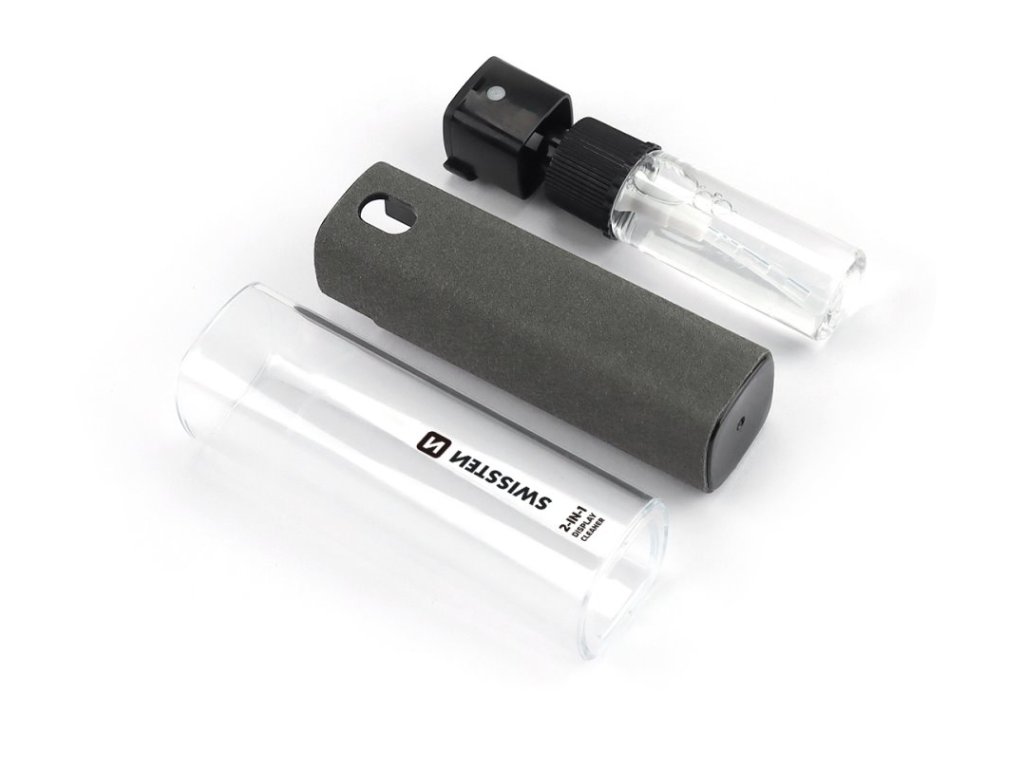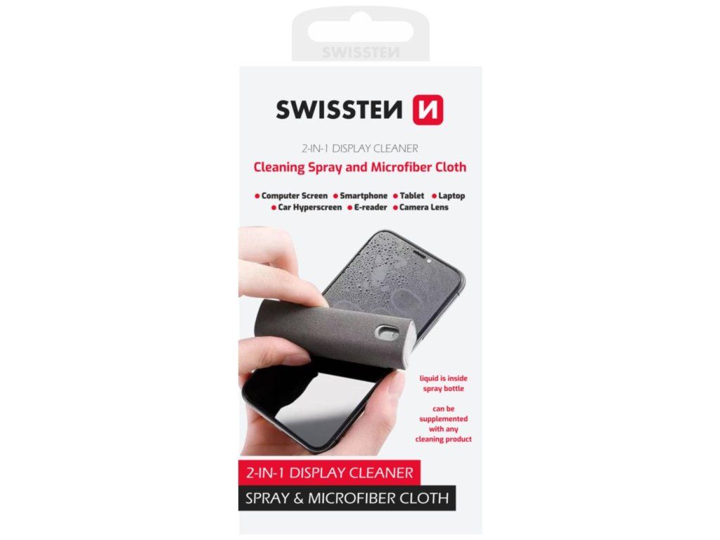 SWISSTEN čistič displejů 2 v 1Univerzální čistič 2 v 1 je efektivní řešení pro odstranění nečistot a otisků prstů z displeje. Čistič je zabalený v hadříku z mikrovlákna, který umožňuje rychlé a pohodlné setření displeje bez nutnosti dalších pomůcek. Čisticí prostředek stačí rovnoměrně nastříkat na displej a hadříkem setřít. 10 ml tekutiny vystačí na přibližně 120 použití.