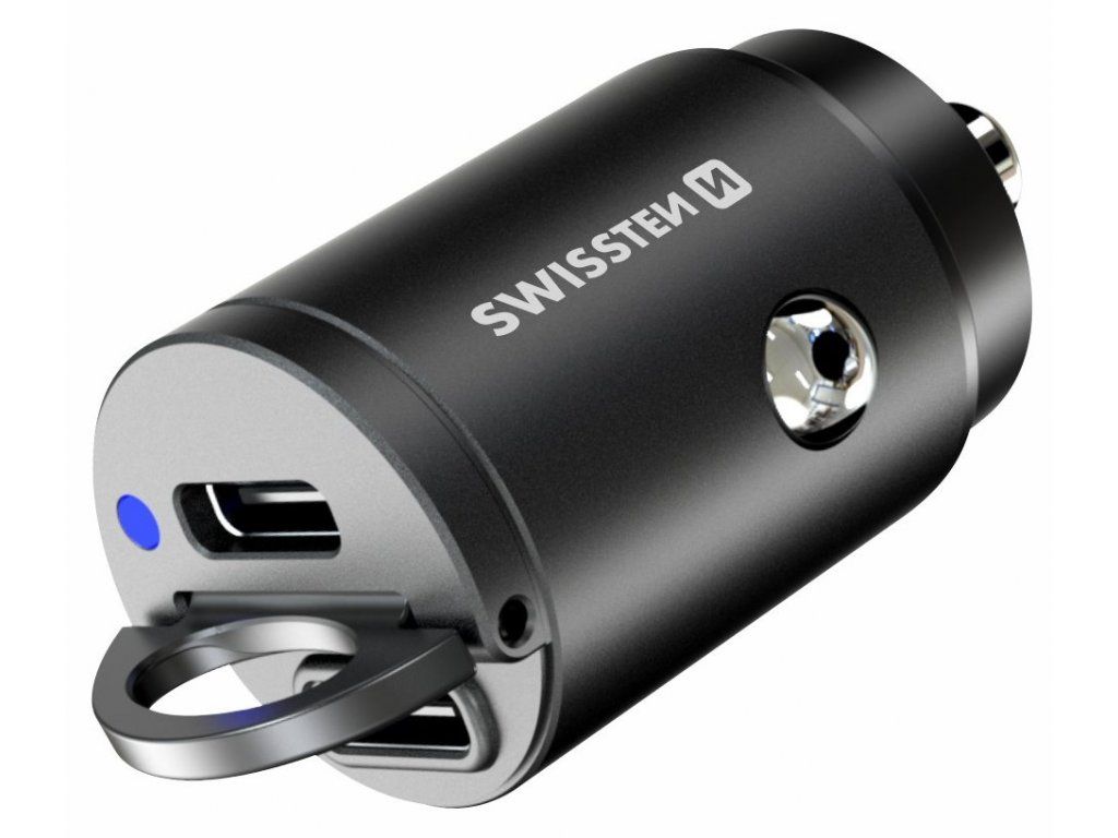 SWISSTEN 20111900Miniaturní nabíječka do auta se dvěma výstupy USB-C s výkonem až 45 W, která na cestách spolehlivě nabije jakýkoli mobilní telefon nebo tablet, a to i současně.