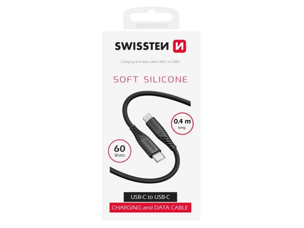 Swissten datový kabel soft silicone usb-c / usb-c 0,4 m černý