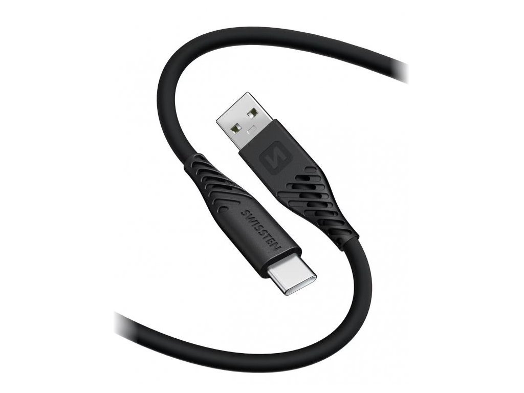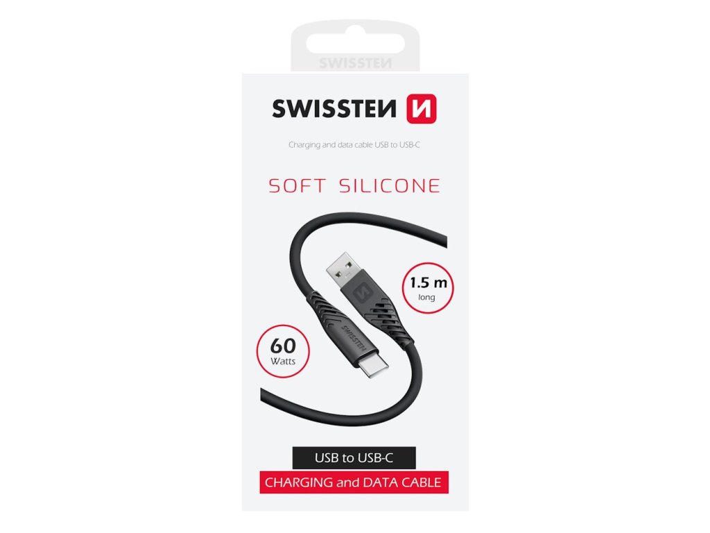 Swissten Datový kabel SOFT SILICONE USB / USB-C 1,5 M 60W ČERNÝ