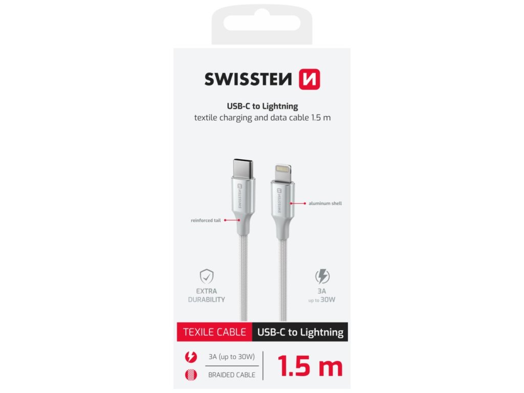 Swissten datový kabeltextile ii usb-c / lightning 1,5 m bílý