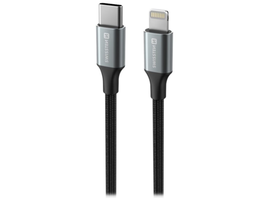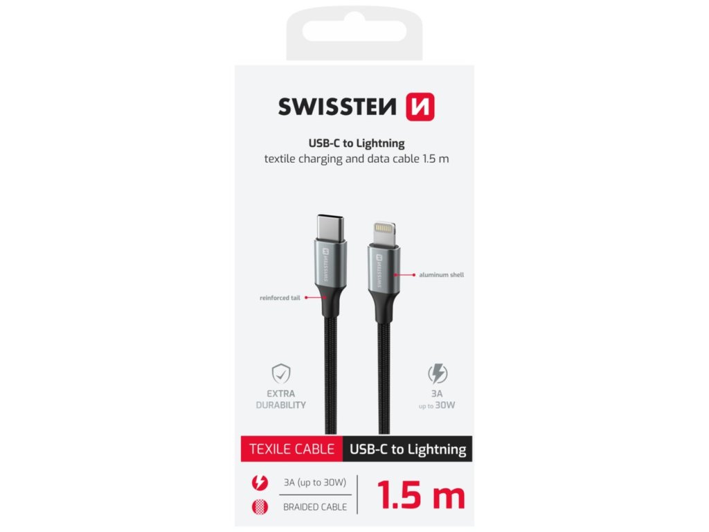 Swissten datový kabeltextile ii usb-c / lightning 1,5 m černý