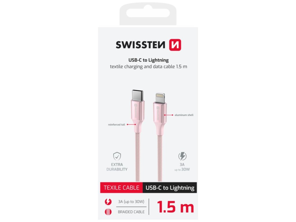 Swissten datový kabeltextile ii usb-c / lightning 1,5 m růžový
