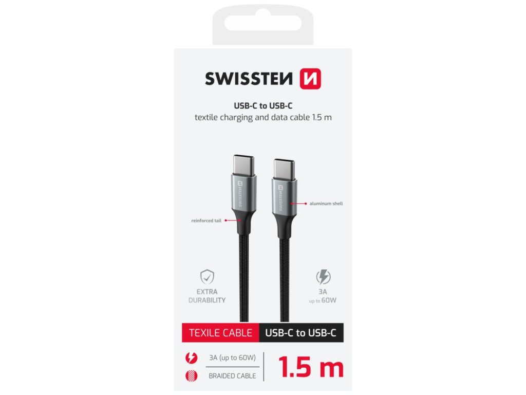 Swissten datový kabeltextile ii usb-c / usb-c 1,5 m černý