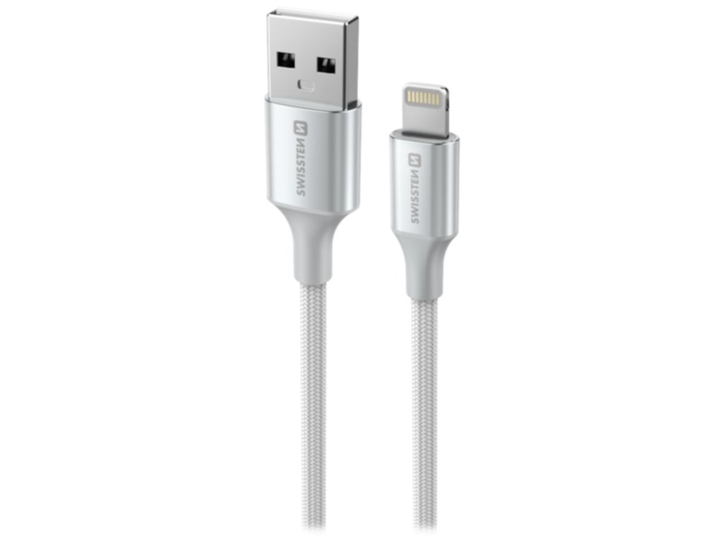 Swissten datový kabeltextile ii usb / lightning 1,5 m bílý