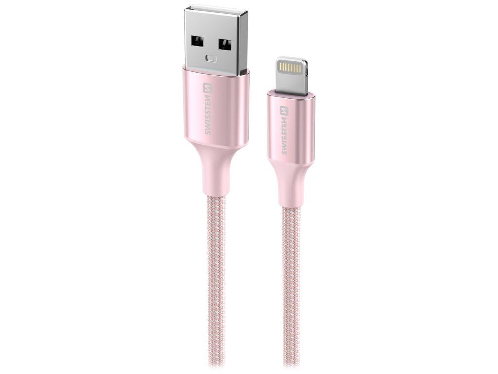 Swissten datový kabeltextile ii usb / lightning 1,5 m růžový
