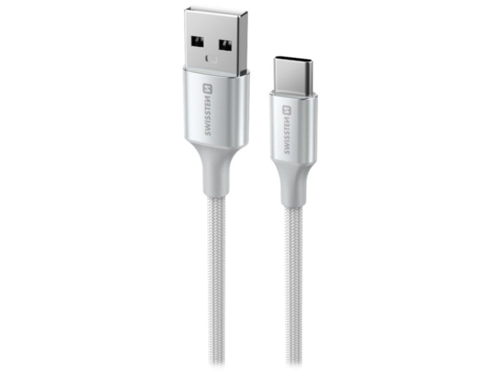 SWISSTEN TEXTILE II USB na USB-C 1,5 mKabel s kvalitním textilním opletením vhodný pro připojení zařízení s konektorem USB-C k počítači s konektorem USB. Podporuje nabíjení proudem až 3 A. Rychlost datového přenosu je až 480 Mb/s.