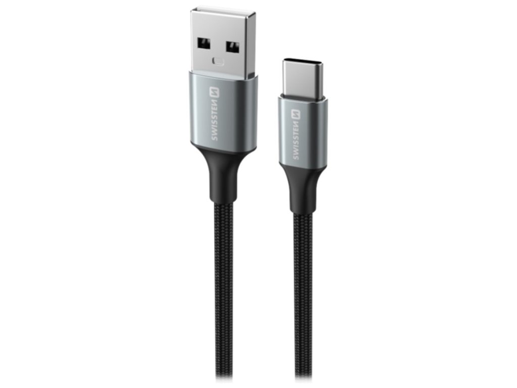 SWISSTEN TEXTILE II USB na USB-C 1,5 mKabel s kvalitním textilním opletením vhodný pro připojení zařízení s konektorem USB-C k počítači s konektorem USB. Podporuje nabíjení proudem až 3 A. Rychlost datového přenosu je až 480 Mb/s.