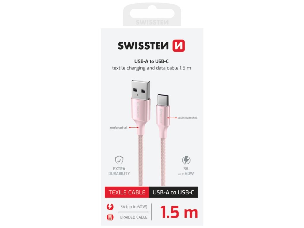 Swissten datový kabeltextile ii usb / usb-c 1,5 m růžový