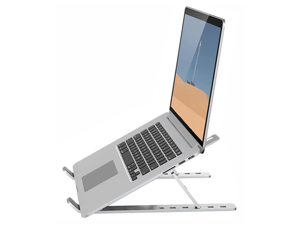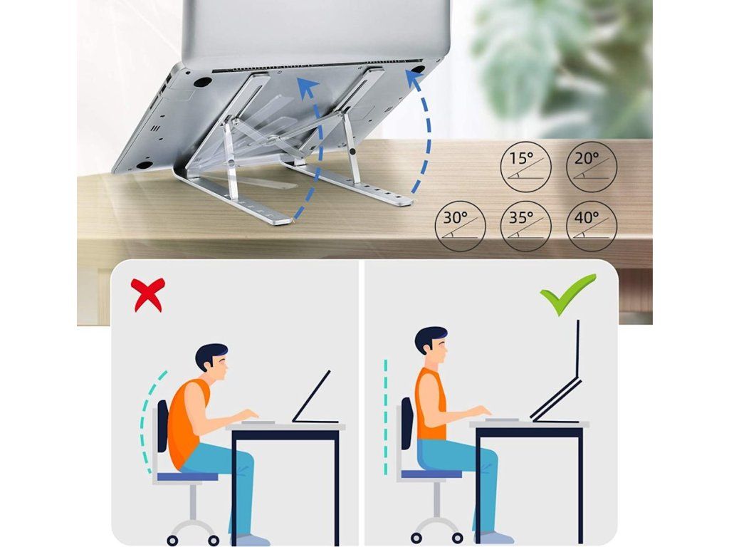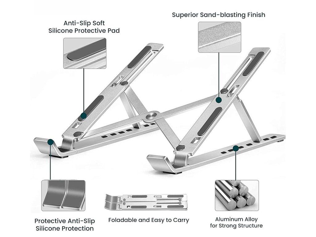 SWISSTEN hliníkový stojánek na notebookStojánek na notebook z elegantního broušeného hliníku se hodí do každé kanceláře. Protiskluzové silikonové podložky poskytují pevnou podpěru a ochranné silikonové prvky zajistí ochranu proti poškrábání a sklouznutí notebooku. Potěší možnost nastavení sklonu a to až v šesti polohách.