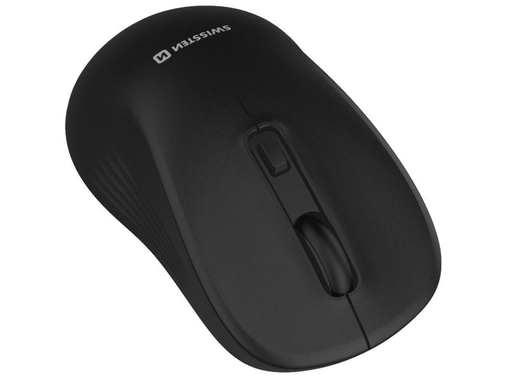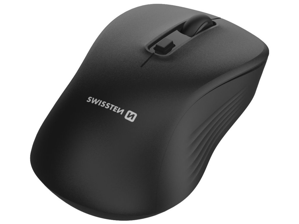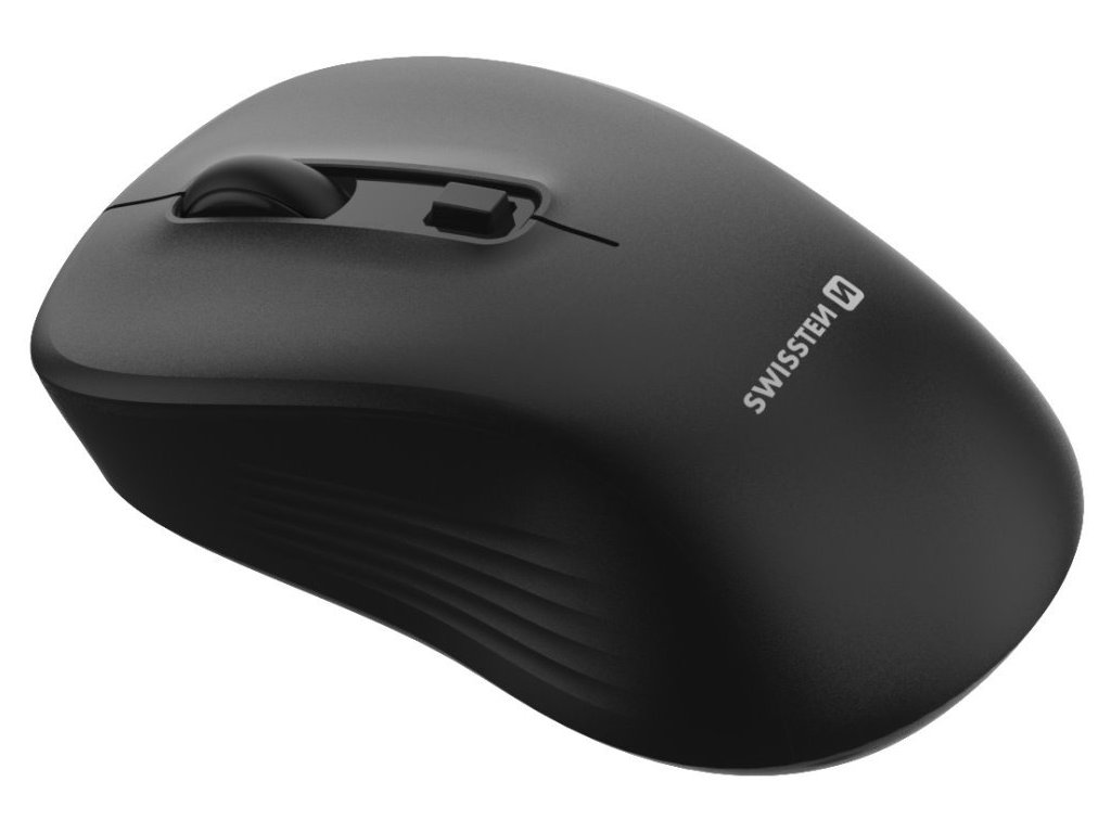SWISSTEN kancelářská bezdrátová myšBezdrátová kancelářská myš disponující optickým senzorem s rozlišením až 1600 DPI. Nabízí ergonomický design pro maximální komfort při celodenním používání, čímž snižuje únavu ruky. Připojení k počítači je realizováno bezdrátově skrze USB přijímač a technologii 2,4 GHz. Vestavěná technologie úspory energie navíc zajišťuje výdrž baterie až jeden rok.