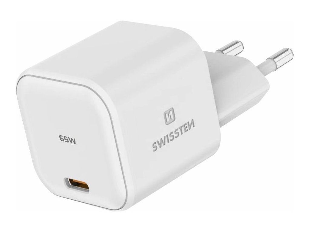 SWISSTEN GaN 1× USB-C PD 65 WUniverzální napájecí adaptér s výkonem až 65 W. Pro nabíjení zařízení je k dispozici konektor USB-C. Adaptér podporuje protokol rychlého nabíjení Power Delivery. Použitá GaN technologie snižuje tvorbu tepla, čímž zvyšuje účinnost nabíječky při zachování kompaktních rozměrů (přibližně 3,5 × 3,5 × 3,5 cm). Díky vyššímu výstupnímu napětí a výkonu umožňuje dobíjet také vybrané notebooky s USB-C portem a podporou Power Delivery.