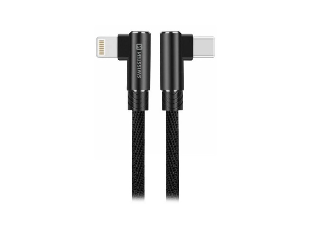 Swissten textilní datový kabel arcade usb-c / lightning 1,2 m černý