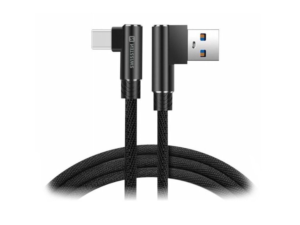 Swissten textilní datový kabel Arcade USB / USB-C 1,2 M /L konektory/ Černý