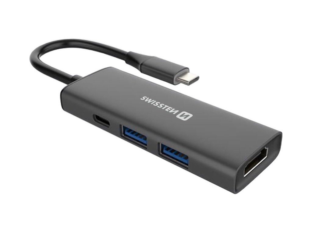 Swissten usb-c hub 4-in-1 (usb-c 100w, hdmi 4k, 2x usb-a) aluminium