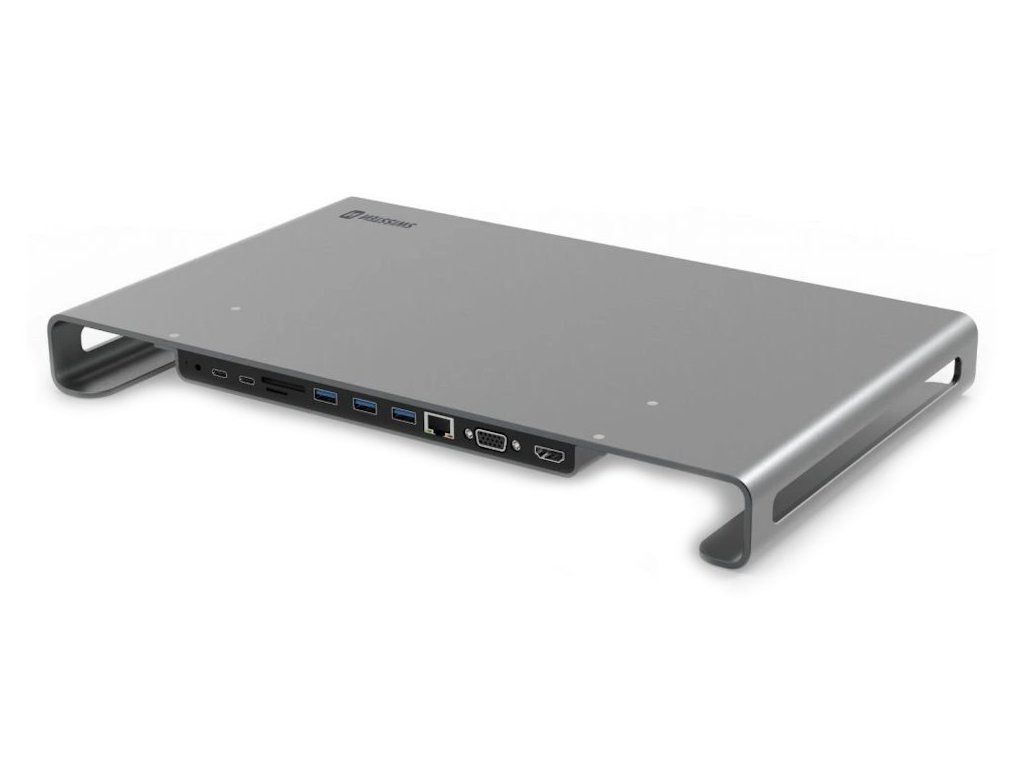 SWISSTEN USB-C HUB 44040104Elegantní a robustní dokovací stanice z hliníku sloužící současně jako praktický stojánek pod monitor nebo notebook. Připojuje se pomocí USB-C portu, skrze který může také přenášet napájení o výkonu až 100 W. Nabízí HDMI výstup s podporou rozlišení 4K při 30 Hz, VGA port a tři USB 3.0 porty pro připojení periferií. Vysokorychlostní přístup k internetu lze realizovat skrze přítomný RJ-45 port. Mimo to je k dispozici i čtečka microSD a SD karet. Pro připojení sluchátek či mikrofonu pak slouží kombinovaný 3,5mm konektor.