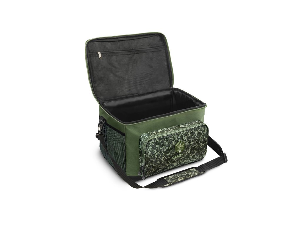 Delphin SPACE je označení pro exkluzivní sérii tašek z dílny značky Delphin. Vyznačuje se špičkovým zpracováním, kvalitními zipy, ale zejména výjimečným designem s použitím C2G kamufláže. CarryALL L doplňuje rodinu CarryALL SPACE C2G o rozměrově kompaktnější, praktickou transportní tašku, určenou k uložení a přenosu různého kaprařského příslušenství, či oblečení. Díky svým rozměrům poskytuje objem až 35l. Tak jako všechny ostatní tašky v této řadě, i velikost L byla navržena s důrazem na praktičnost, trvanlivost a odolnost vůči nepříznivým povětrnostním vlivům. Brašna je ze všech stran důkladně polstrovaná pro maximální ochranu příslušenství uvnitř. Celá spodní část a boky do výšky až 5 cm jsou opatřeny kvalitním nepromokavým materiálem. Nehrozí tak znečištění a následně znehodnocení produktu při položení například na mokrou nebo špinavou zem. Dvě síťované kapsy po bocích a jedna velká uvnitř umožňují uložení dalšího příslušenství, o kterém budete mít vždy dokonalý přehled. Taška disponuje také praktickou kapsou se dvěma zipy na předním panelu. Samotný vnitřek je navržen tak, aby do něj bylo možno s lehkostí vkládat další tašky série SPACE či AREA. Maximální komfort zajišťuje mimořádně měkké polstrování ramenního popruhu či praktická rukojeť umožňující přenos tašky v ruce. Celkový design samozřejmě dotváří C2G kamufláž v kombinaci s černými prvky, efektní logo či piktogram v přední části. Technické parametry: Rozměr tašky: 42x35x30cm Čistý rozměr vnitřního prostoru: 40x30x27cm Rozměr přední kapsa: 30x20x5cm Rozměr boční kapsy: 28x20cm Vnitřní síťovaná kapsa: 40x30cm Objem: 35l Stylová patentovaná kamufláž z dílny značky Delphin pod označením C2G má mnoho podob a úhlů pohledu. Přesně tak i její název, který můžeme volně přeložit jako Carpath 2. generace, což přímo odkazuje na jejího předchůdce, ale můžeme ho číst i jako Carpath to Green, tedy přechod myšlenky Carpathu do zelené barvy. Její jedinečnost a nezaměnitelnost spočívá v prvcích, ze kterých je vytvořena. Na první dojem jde o kamufláž tvořenou třemi různými odstíny zelené. Všechno se však změní při detailnějším pohledu, kdy si všimnete siluety kaprů, komponentů kaprařské montáže a log značky Delphin spolu s označením C2G. Díky tomuto neopakovatelnému provedení se vaše rybářská výbava okamžitě stane jedinečnou a maximálně originální.Doplňkové parametry