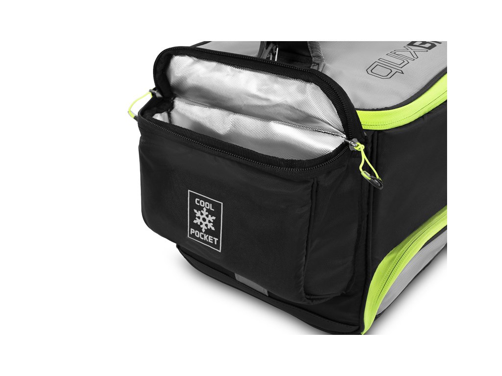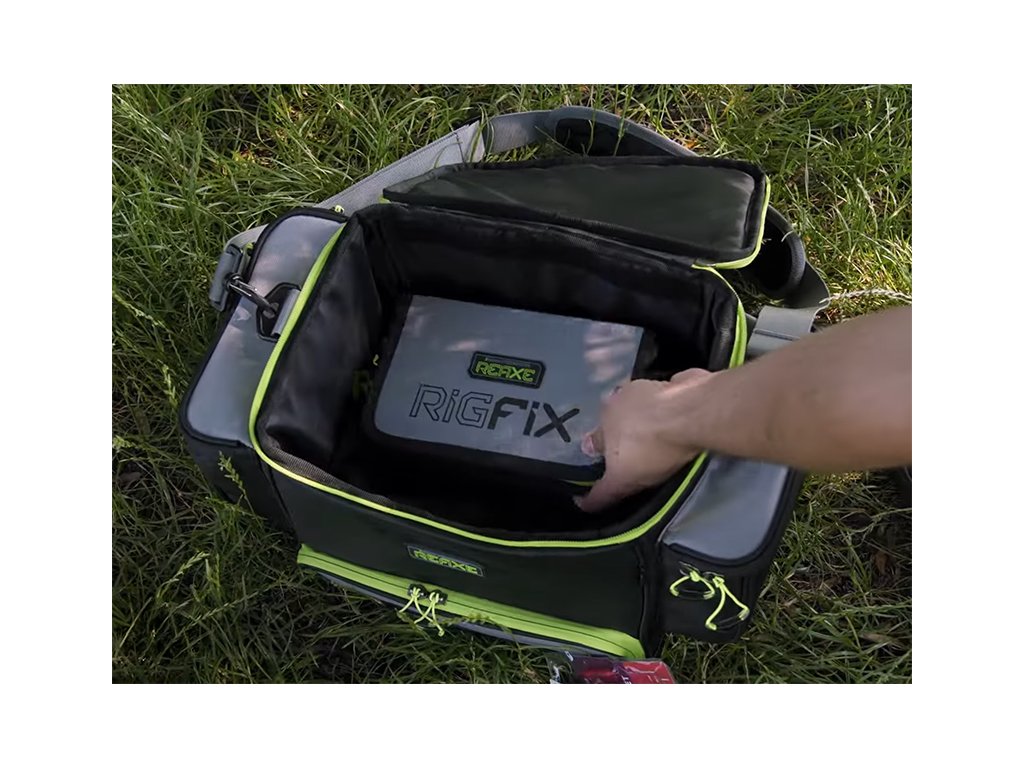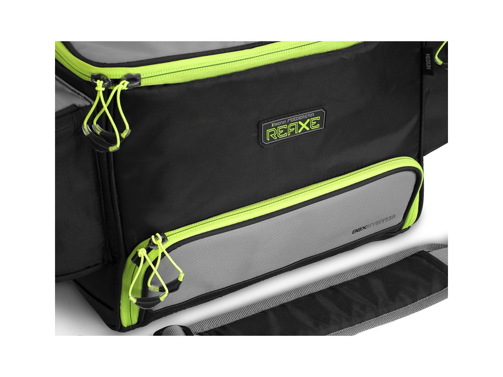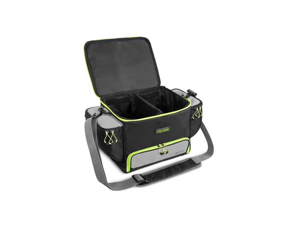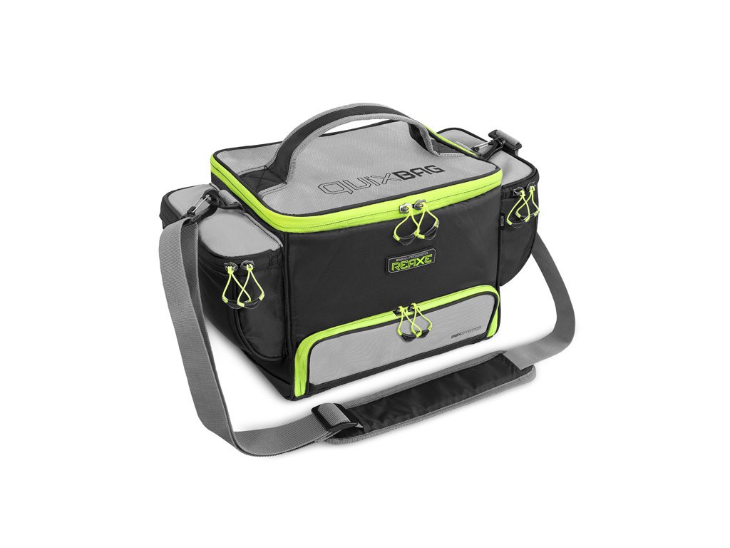 Praktická a všestranná feederová taška s množstvím přihrádek umožňující přehledné uložení Vašeho vybavení. Ve vrchní části se nachází velká přihrádka s přepážkou na suchý zip, kterou si můžete přesouvat po celé délce a tím modulovat přihrádku. Pod touto sekcí se nachází největší komora, ke které se dostanete z přední části tašky a naleznete zde 2 praktické plastové boxy na různé rybářské příslušenství. Po obou stranách tašky se nacházejí dvě rozměrné kapsy. Jedna z nich má termoizolační ochrannou vrstvu, díky které můžete v kapse uchovávat živou nástrahu a návnadu. Samozřejmě je dobré přidat také chladicí médium. vložky k cestovním chladničkám a pod. Druhá boční kapsa je vyrobena z klasické tkaniny a je vhodná pro ukládání různého menšího příslušenství. Tašku QuixBAG můžete nosit za praktickou rukojeť na vrchní části, nebo za popruh, který naleznete automaticky v balení. Taška je velmi kvalitně provedená a má masivní zipy s plastovými táhly. Designově je laděna tak, aby zapadla do série REAXE, tedy byla zvolena kombinace černé a šedé barvy s výraznými zelenými zipy a grafikou. Technické parametry: Rozměry: 41x30x25cm Rozměr vrchní přihrádky: 28x23x12cm Rozměry plastové krabice: 27x18x4cm Rozměry bočních sáčků: 20x15x7cmDoplňkové parametry