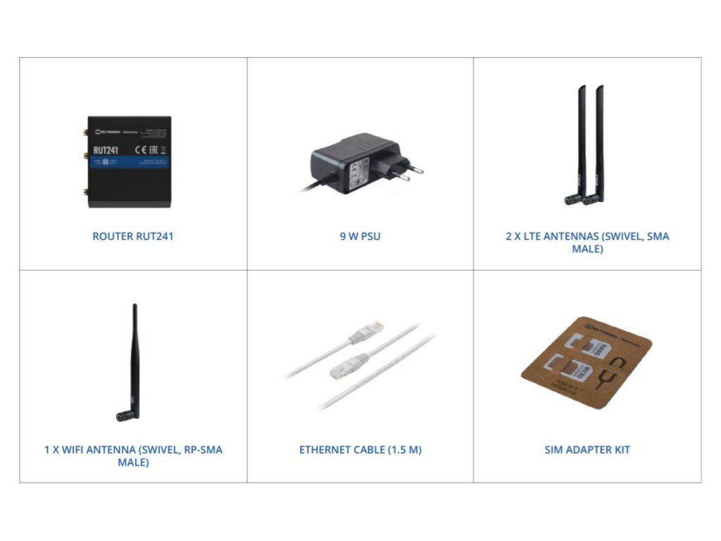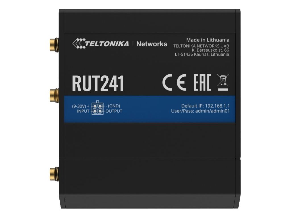 Teltonika RUT241RUT241 je ekvivalentem verze RUT240 (kód NARTEL0001). Tato verze má odlišný, ale srovnatelný čipset, CPU MediaTek MT7628 a 128 MB DDR2 RAM.