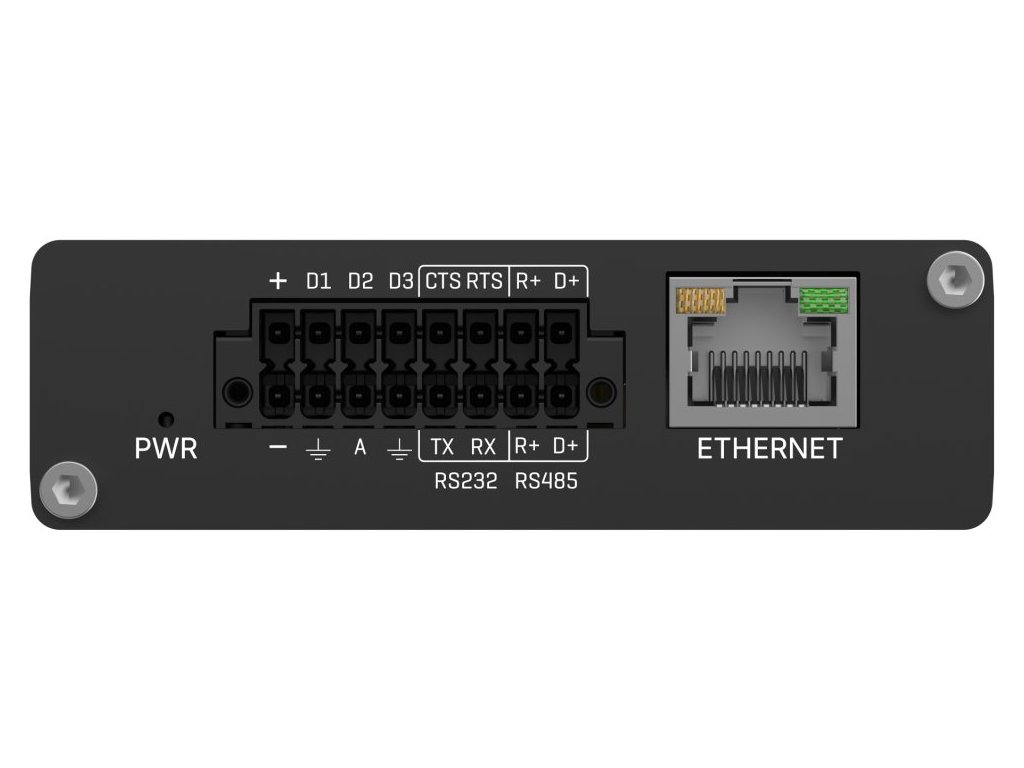 Rozhraní: 1× RJ-45 (10/100 Mbps), 1× SMA (GNSS), 1× 16pin terminál (3× konfigurovatelný vstup/výstup, RS-232, RS-485, 1× analogový vstup)
