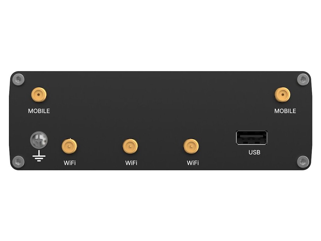 Antény: 2× SMA pro mobilní připojení, 3× RP-SMA pro Wi-Fi