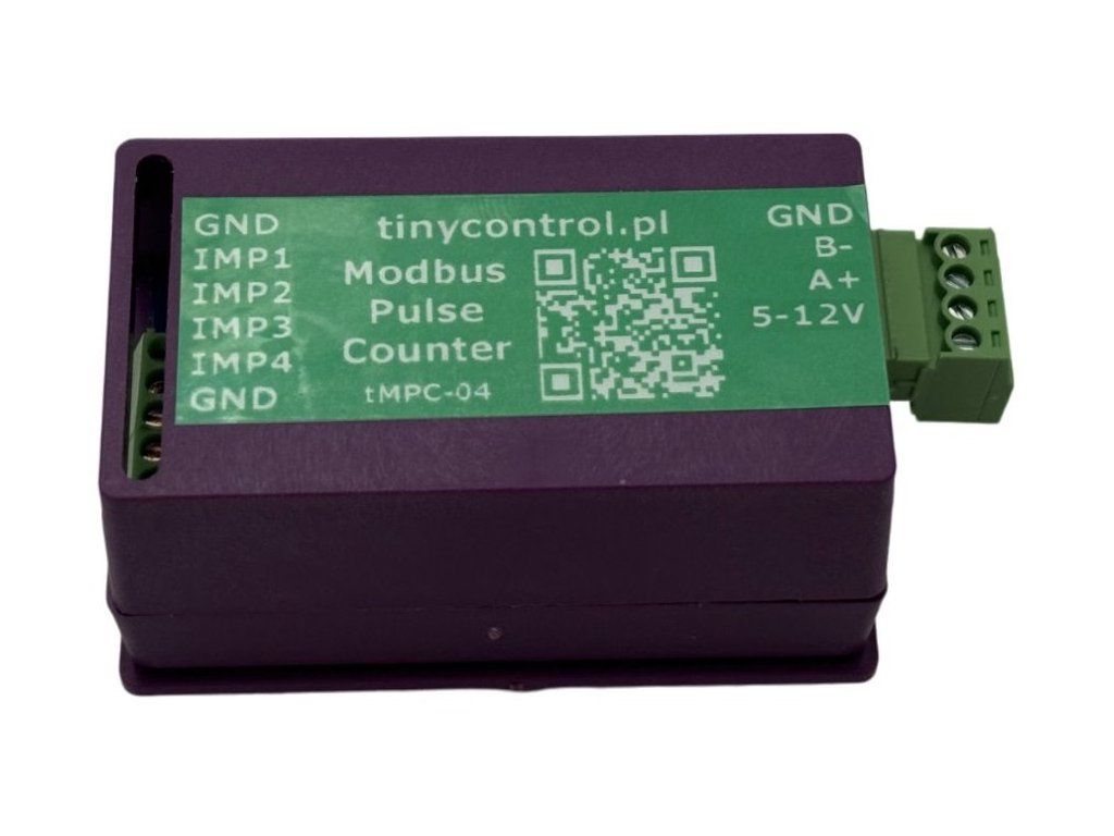 Tinycontrol tMPC-044vstupový pulzní čítač určený pro použití s libovolnými měřiči s pulzními výstupy. Komunikuje prostřednictvím protokolu Modbus RTU a poskytuje údaje o počtu pulzů, vypočítané energii a odhadovaném výkonu. Lze jej využít i pro měření dalších veličin, např. průtoku vody nebo plynu.