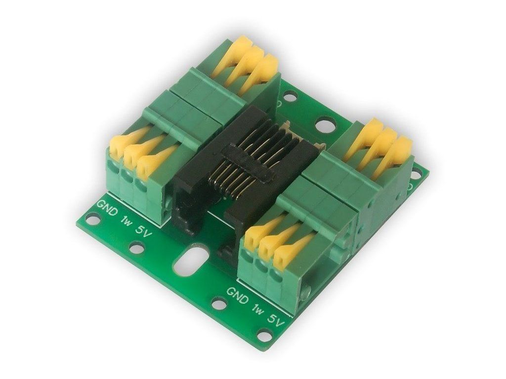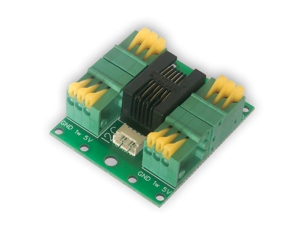Tinycontrol splitter senzorů DS18B20Kabelový (1Wire) splitter (rozdělovač) pro připojení až 4 senzorů DS18B20 pro LAN ovladač.