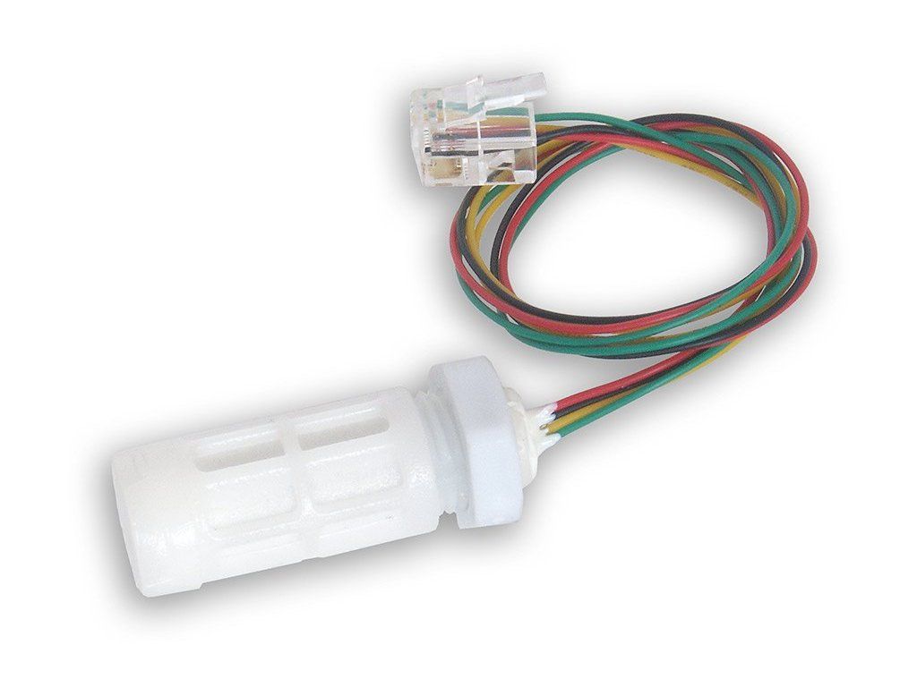 Univerzální senzor pro měření teploty, vlhkosti a atmosférického tlaku s integrovaným kabelem a RJ12 konektorem.