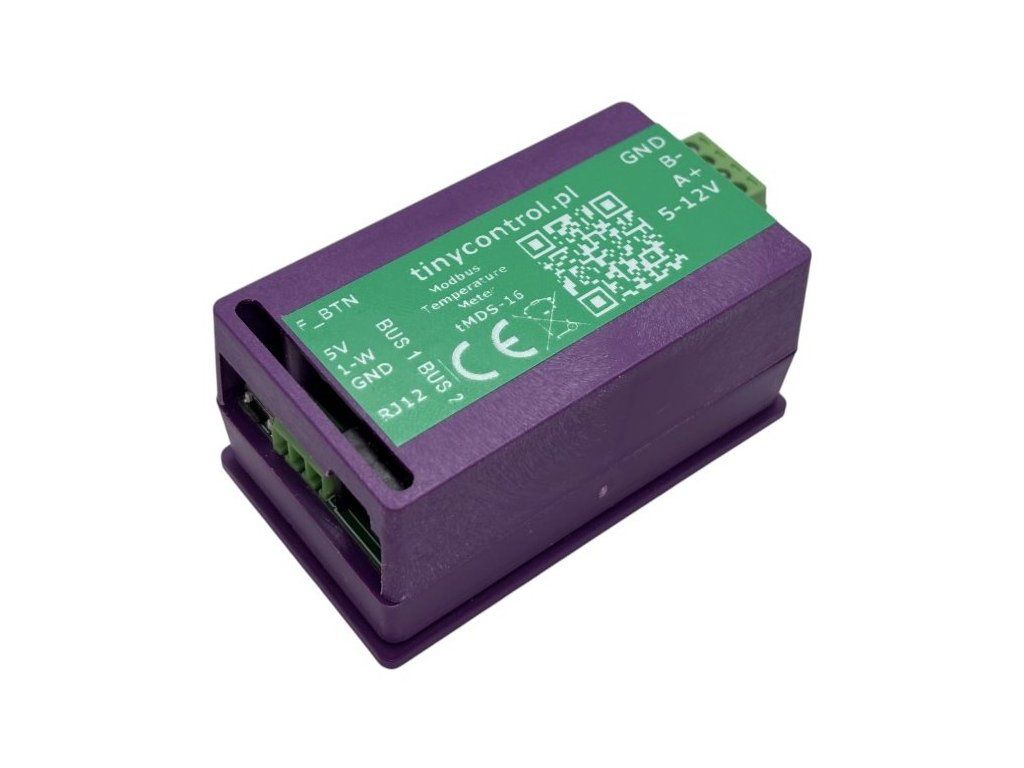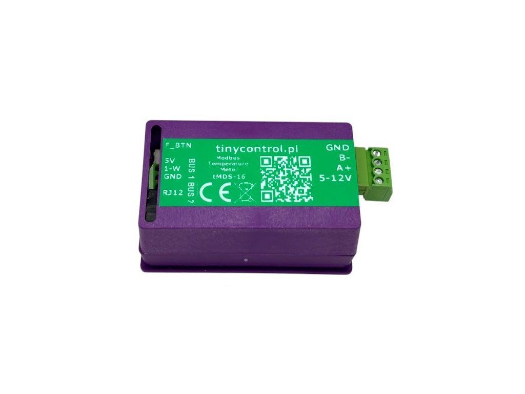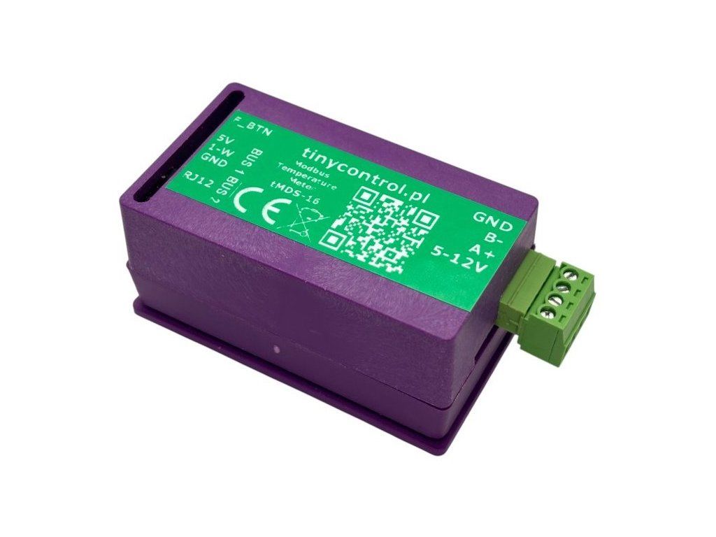 Tinycontrol tMDS-16tMDS-16 je zařízení určené k měření teploty a jejímu čtení prostřednictvím sběrnice RS485/Modbus RTU. Je vybaveno dvěma jednovodičovými sběrnicemi, z nichž každá podporuje až osm teplotních senzorů DS18B20. Naměřené hodnoty jsou ukládány do Modbus registrů. Zařízení je primárně navrženo pro připojení k LK4 nebo LK3.9. Konfigurační soubor je dostupný na stránce zařízení. Pomocí převodníku RS485/USB jej lze používat také s počítačem.