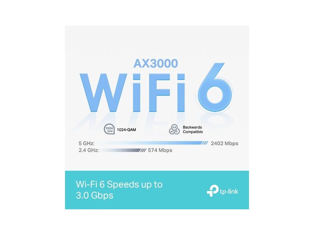- Dvoupásmová Wi-Fi 6 AX3000: Mimořádně rychlá Wi-Fi 6 s rychlostí až 3,0 Gb/s.