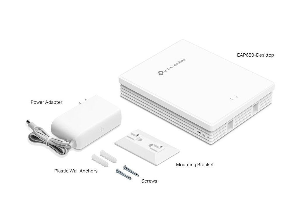 TP-Link EAP650-DesktopStolní dvoupásmový access point s podporou Wi-Fi 6 (802.11ax) zajišťuje spolu s technologií MU-MIMO špičkové připojení s celkovou rychlostí až 2976 Mb/s při rychlosti 574 Mb/s v pásmu 2,4 GHz a 2402 Mb/s v pásmu 5 GHz.