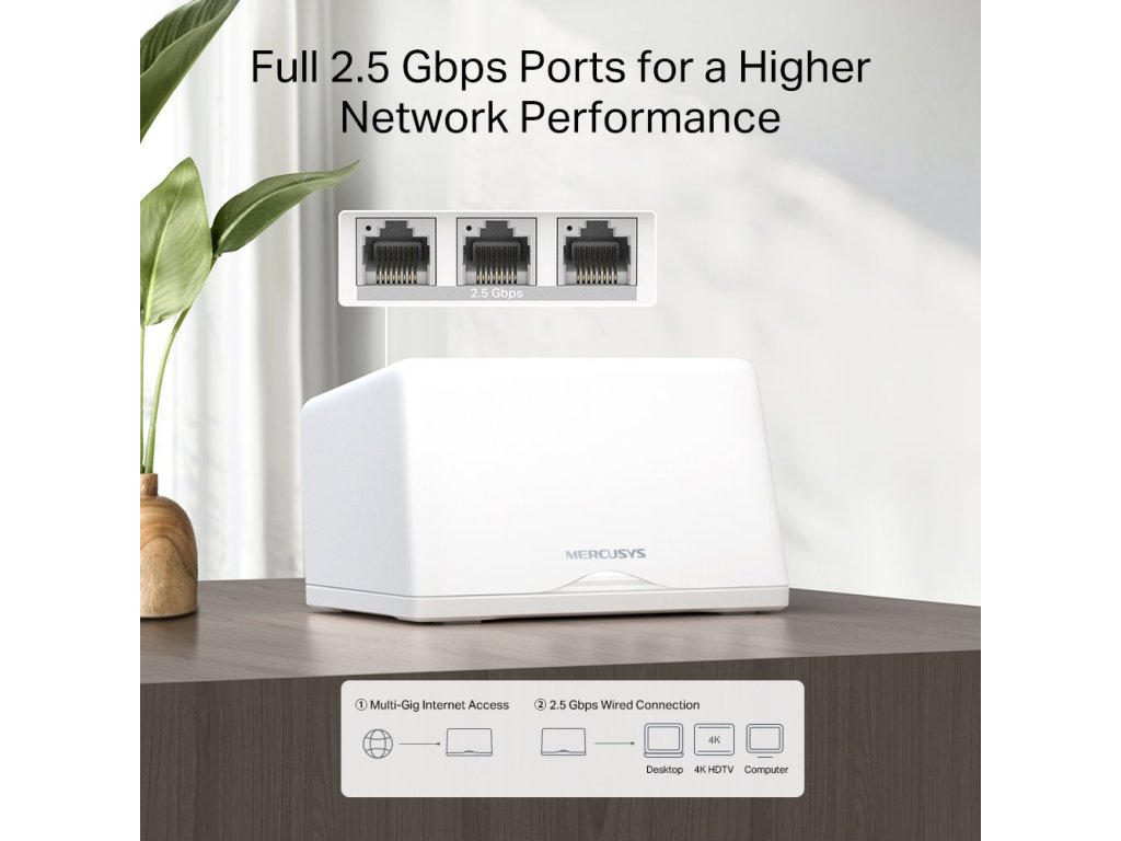 Jednotky Halo fungují jako sjednocená síť s jedním názvem a heslem, aby eliminovaly oblasti se slabým signálem. Vyberou nejlepší signál a nabídnou nejlepší připojení. Halo H47BE využívá 2,5GbE připojení s 3× 2,5 Gb/s WAN/LAN automatickými porty. Jeden z portů může sloužit jako LAN port pro zařízení nebo jako kabelová propojení mezi jednotkami Halo. Díky tomu poskytuje nejlepší 2,5 Gb/s připojení, ať už kabelové nebo bezdrátové.