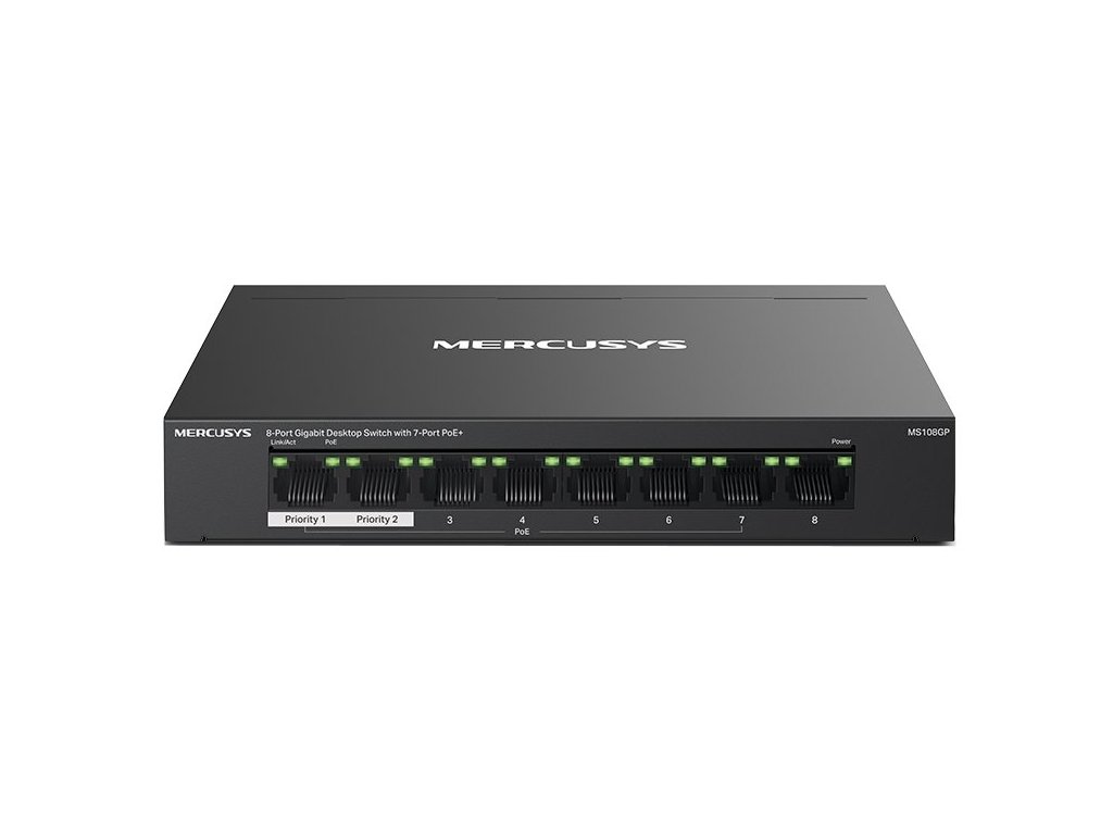 TP-Link Mercusys MS108GP Switch 8-Port, 7× Gigabit PoE+, 1× GLAN, 802.3af/at, 65 W