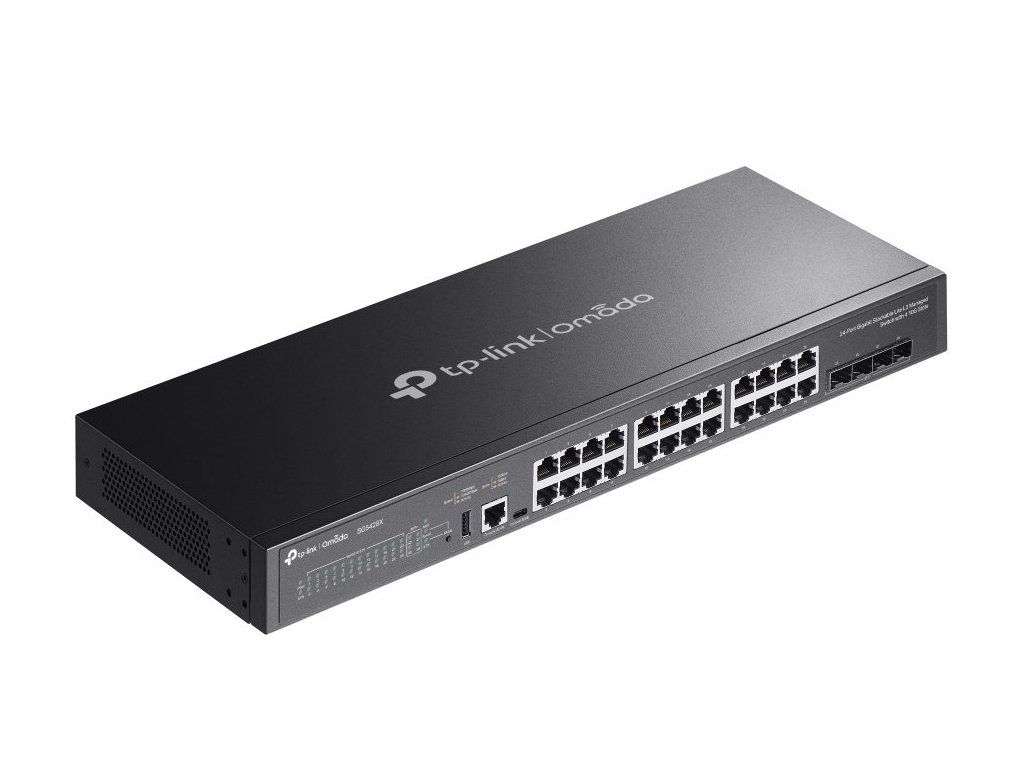 TP-Link SG5428XŘízený L3 switch disponující 24× GbE RJ-45 a čtyřmi 10G SFP+ sloty