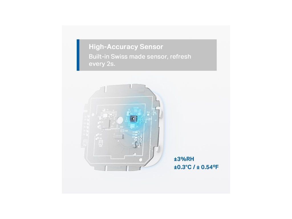 - Monitorování v reálném čase - s velkou přesností detekuje teplotu a vlhkost v reálném čase (přesnost měření: ±0,54 °F, ±3 % RH)