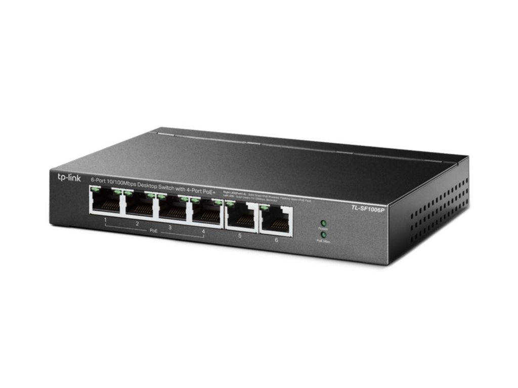 TP-Link TL-SF1006PProfesionální 6portový 10/100 Mbps neřízený PoE+ switch, který nevyžaduje žádnou konfiguraci (Plug and Play) a je vybaven 4 PoE+ porty (802.3af/at) pro přenos dat i napájení.