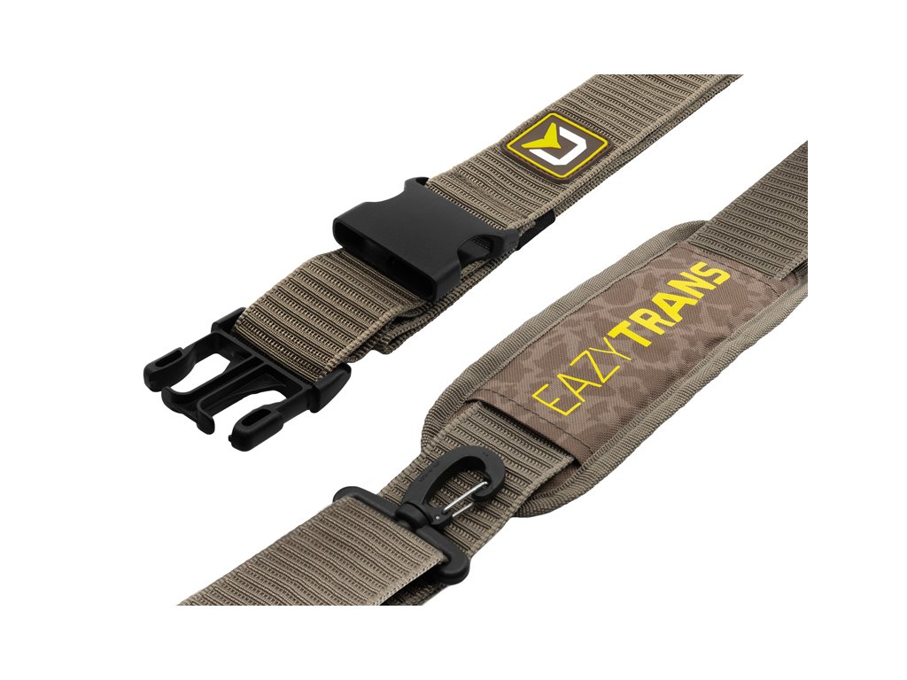 Neskutečně praktický, efektivní a zároveň zcela jednoduchý produkt, který nahrazuje neskladné a finančně náročné tašky! To je průlomový transportní popruh EazyTRANS z dílny firmy Delphin. Potřebujete přenést lehátko, křeslo, spacák, případně vše najednou? S tímto velmi pevným popruhem, to nebude žádný problém. EazyTRANS se skládá ze tří částí, které spolu tvoří jeden celek určený pro transport rybářské výbavy. Základem je ramenní popruh s vyztuženou měkčenou částí a velmi pevnými plastovými úchyty. Právě na tyto úchyty se upevní dva boční popruhy s nastavitelnou délkou, opatřené masivními klipy. Díky své nastavitelné délce s nimi dokonale obepnete a uchytíte jakoukoliv část rybářské výbavy, případně i více produktů najednou, které můžete bez problémů přenášet na zvolené místo. EazyTRANS je dodáván v malé praktické taštičce, díky níž bude zabírat minimálně místa při transportu. Při tomto důmyslném produktu jednoznačné platí "za málo peněz hodně muziky". Technické parametry: Délka ramenního popruhu: 90-140cm Délka bočních popruhů: max. 105cmDoplňkové parametry