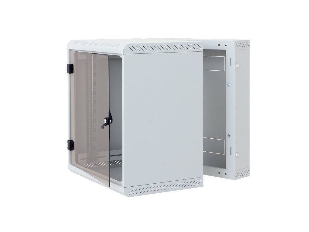 Triton RBA 19" 18UDvoudílný nástěnný rozvaděč s krytím IP20, nosnost při správném zavěšení 30 kg. Dveře celoskleněné s bezpečnostním tvrzeným sklem 4 mm, robustní svařovaná konstrukce. Součástí rozvaděče jsou dvě posuvné vertikální lišty.