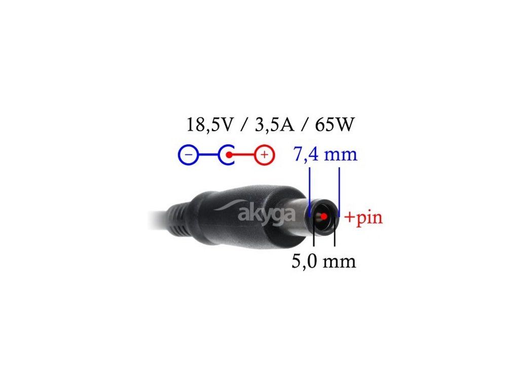 TRX Akyga 65W napájecí adaptér/ nabíječka/ HP/ Compaq/ 18.5V/ 3.5A/ 7.4x5.0mm konektor + pin/ neoriginální