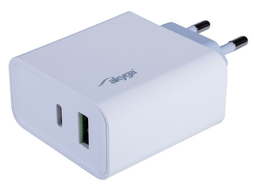 TRX Akyga AK-CH-14Univerzální USB nabíječka do sítě pro rychlé nabíjení až dvou zařízení současně. Díky celkovému výkonu 45 W nabíječka dobíjí telefony, tablety a další zařízení nejvyšší možnou rychlostí. Pro tyto účely je k dispozici port USB typu C a konektor USB typ A, který lze jednoduše použít pro nabíjení většiny zařízení. Technologie Power Delivery přizpůsobuje parametry napájení připojenému zařízení. Nabíječka podporuje protokoly Power Delivery 3.0, Apple Fast Charge, Huawei FCP, Quick Charge 3.0, Samsung AFC a PPS. Samozřejmostí je pak ochrana proti přetížení, přepětí, přehřátí a zkratu na výstupu.