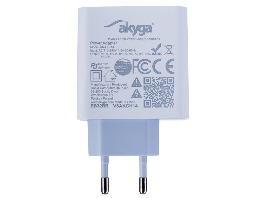 TRX Akyga AK-CH-14 USB nabíječka 220V/ 5-20V/ 45W/ USB-C + USB-A/ PD 3.0/ QC 3.0/ AFC/ FCP/ Apple 2.4A/ PPS/ bílá