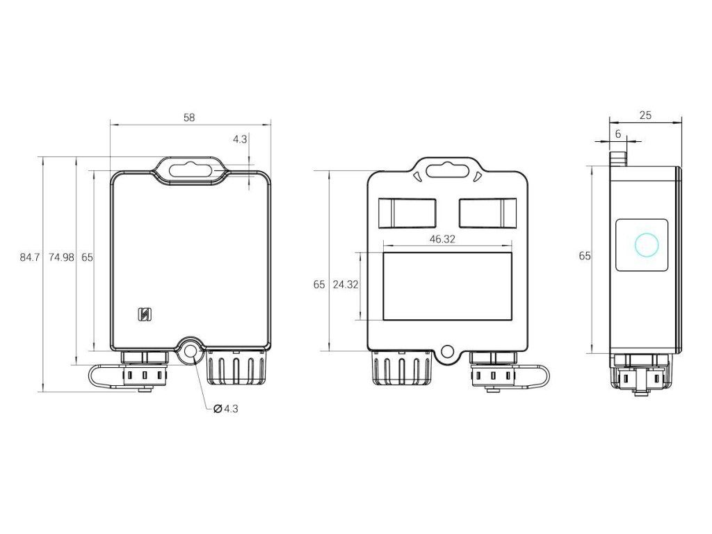 | Dimenze | 58 × 65 × 25 mm (2,28 × 2,56 × 0,98 palce) |