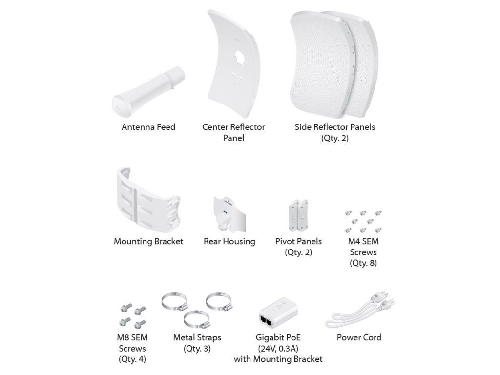 Ubiquiti LiteBeam 5AC Long RangeAnténní systém se skládá ze dvou 26 dBi antén s vertikální a horizontální polarizací. Patentovaná technologie InnerFeed integruje celou rádiovou část přímo do zářiče, který je krytý vysoce odolným UV stabilizovaným plastem.