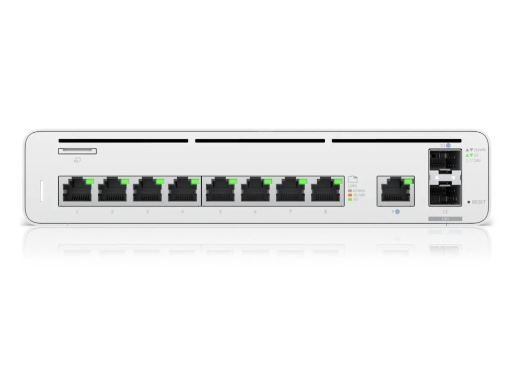 Rozhraní: 9x GbE RJ-45, 2x 10GbE SFP+, microSD slot, Bluetooth (správa)