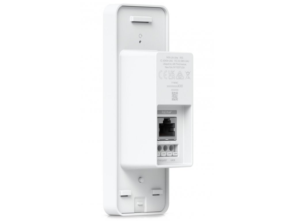 Napájení a připojení je realizováno skrze RJ-45 port s podporou PoE+. Odemknutí je realizováno pomocí NFC karty nebo aplikace UniFi Identity.