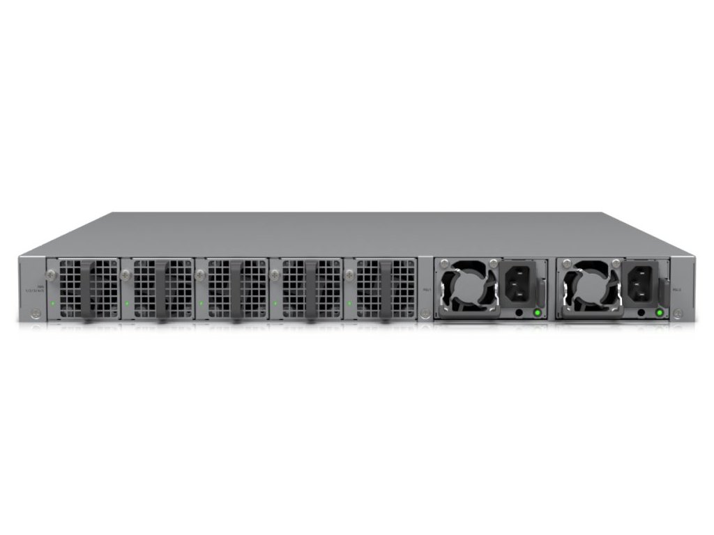 Ubiquiti Enterprise Campus AggregationUniFi Switch Campus Aggregation je spolehlivý switch s managementem v profesionálním provedení s možností montáže do racku. ECS-Aggregation je vysoce výkonný L3 agregační přepínač disponující 48 SFP28 sloty (25 Gb/s), 6 QSFP28 sloty (100 Gb/s), přepínací kapacitou 1,8 Tb/s a 1,3" dotykovým displejem. Díky podpoře technologie MC-LAG umožňuje vysokou dostupnost a vyvážení zátěže mezi zařízeními, zatímco VRRP zajišťuje automatické přepnutí provozu při výpadku. Zařízení je vybaveno dvěma hot-swap napájecími moduly, které nabízejí redundanci 1+1, a pěti hot-swap ventilátory, což zvyšuje jeho spolehlivost a usnadňuje údržbu. Kromě toho podporuje pokročilé funkce směrování, včetně statického směrování a dynamického routingu, jako BGP či OSPF (plánováno v budoucích aktualizacích UniFi Network).