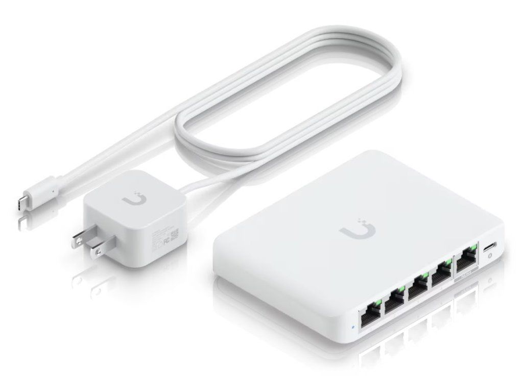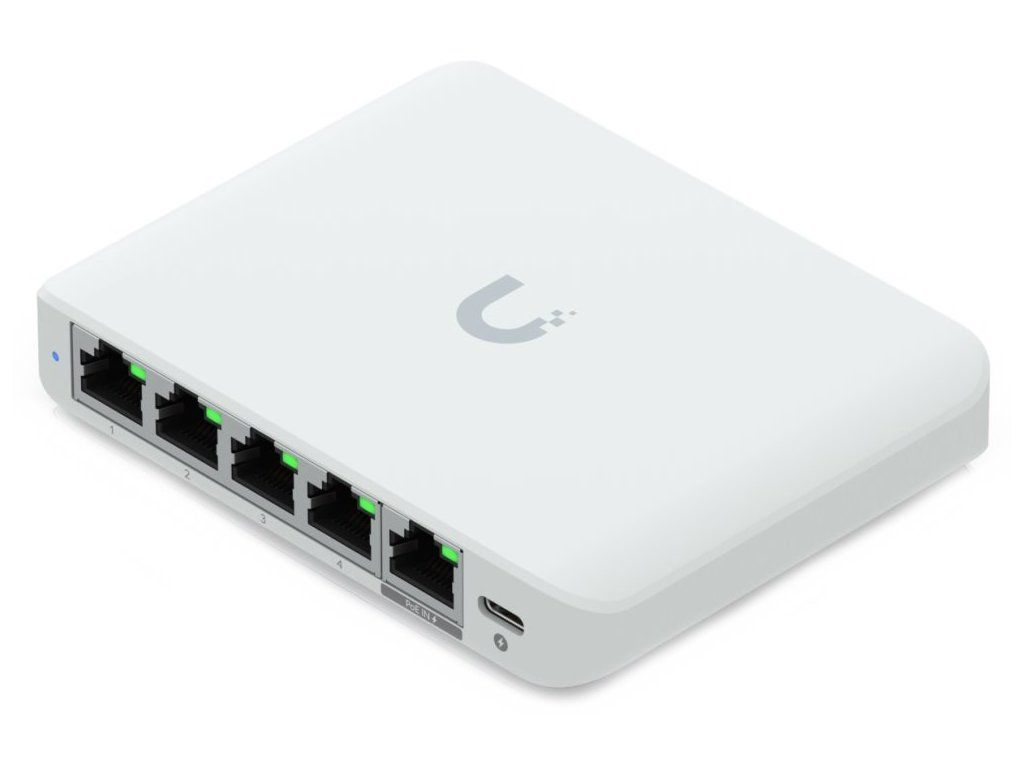 Ubiquiti UniFi Switch Flex Mini 2.5GUniFi Switch Flex Mini 2.5G je osazen pěti 2,5G RJ-45 porty. Jedná se o L2 switch s celkovou kapacitou 25 Gbps a ryhlostí směrování 18,6 Mpps. Switch lze napájet buď přes USB-C konektor, nebo pomocí PoE.