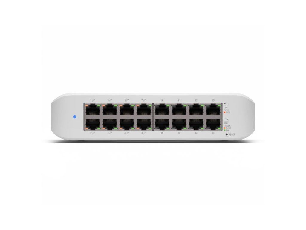 Ubiquiti UniFi Switch Lite 16 PoEUniFi Switch (USW-Lite-16-POE) je ideální pro menší instalace hotspotového systému UniFi, které požadují výkonný switch s managementem ve stolním provedení.